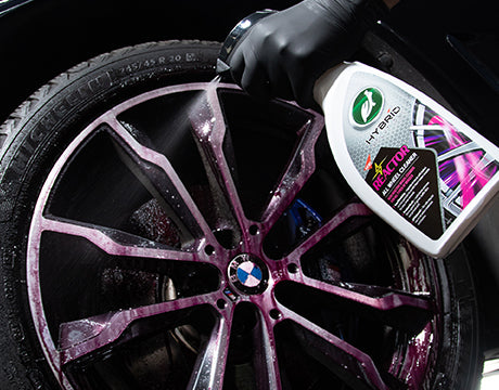 Brake dust bonds to wheels with iron particles that standard cleaners can't touch. Reactor's innovative formula activates on contact specifically reacting with iron to create a water-soluble layer for easy removal.